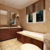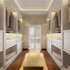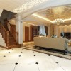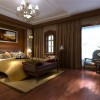客厅内吊顶使用黄金色涂料装饰,让房间豪华感提升,上面的石膏线作为装饰让房间内多了一个灵动性,在吊顶的中间安装的是一个造型比较华丽的水晶吊灯,灯光柔和大气,照在室内让室内变得比较的温馨。在吊灯的下面就是一个沙发和茶几,沙发的造型优雅,线条柔和,温暖的颜色让人温暖,蓬松的坐垫给人舒适的感觉。在沙发的两侧放置的是边几和台灯,边几使用实木做成,自然,造型也是非常的活泼的,上面的台灯晶莹,配合边几使用非常的和谐,沙发的对面是一个电视,电视安装在一个大理石的墙面上,高端大气。两侧使用的是罗马柱装饰的,非常的浪漫温馨。